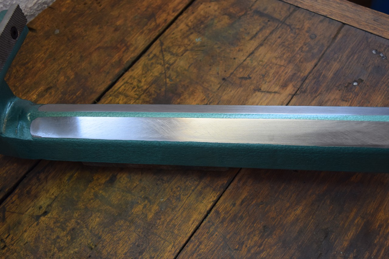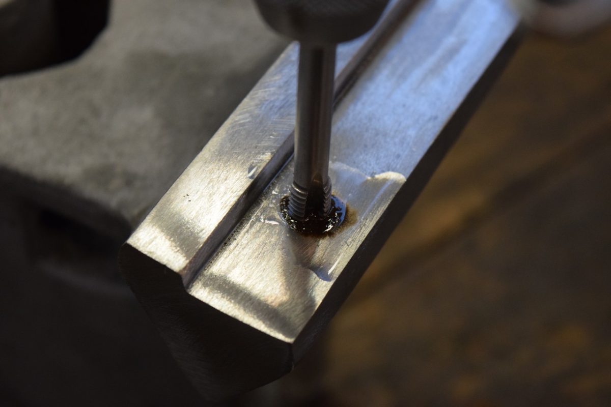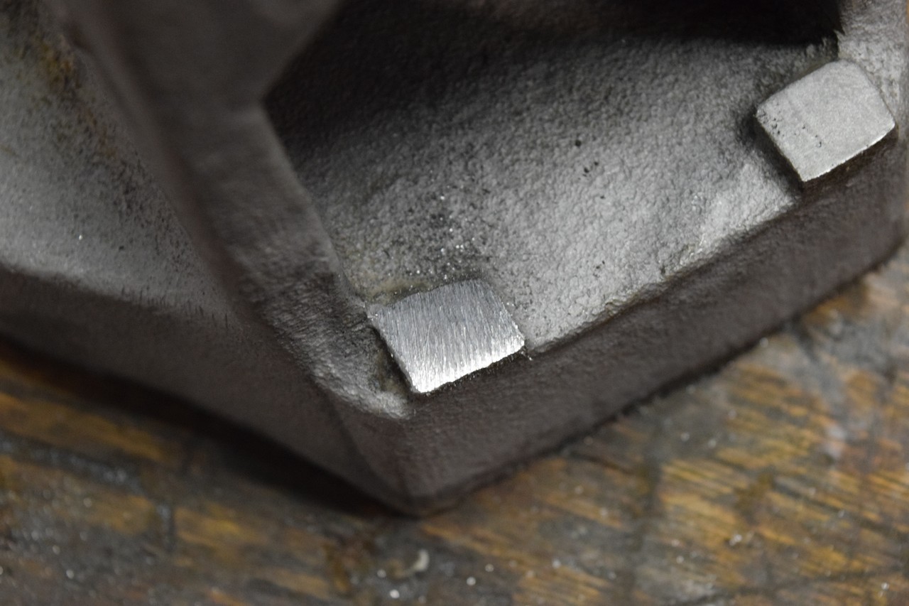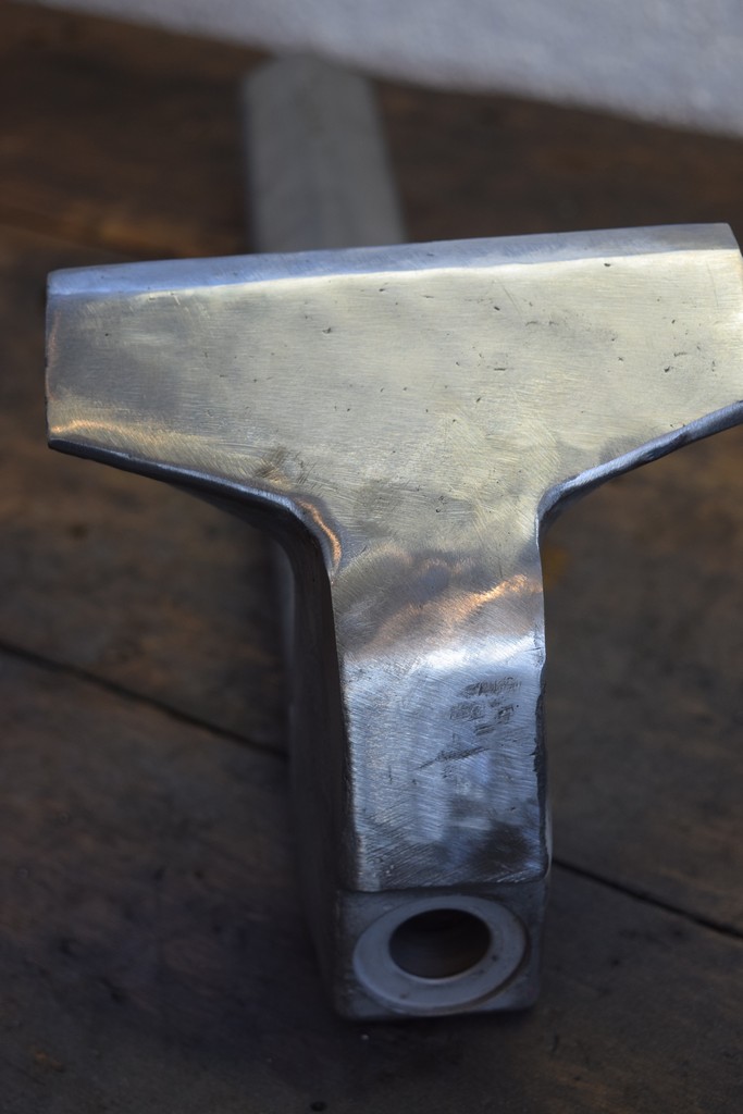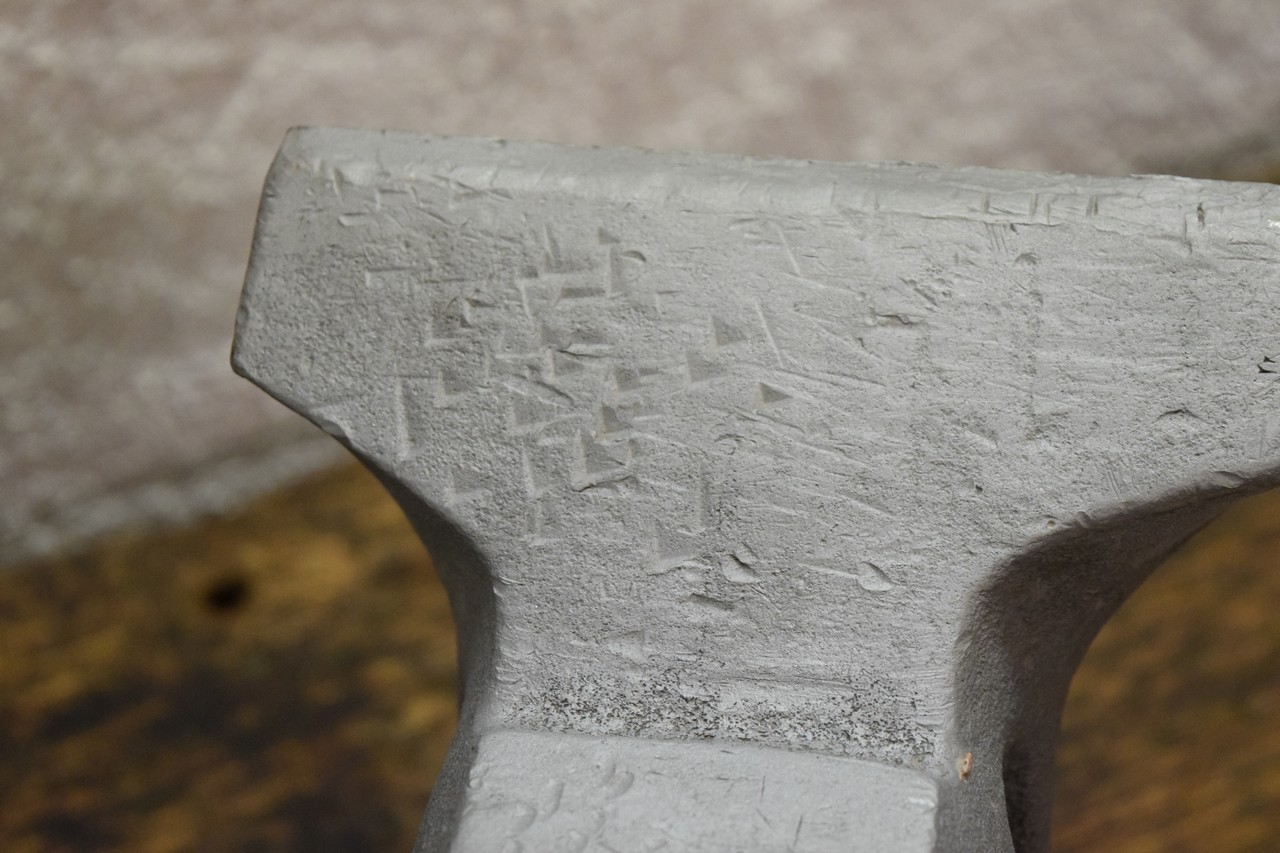 L’enclume étant pleine de coups de marteaux, je décide d’enlever un peu de matière pour lui refaire une surface lisse et parfaitement plane.