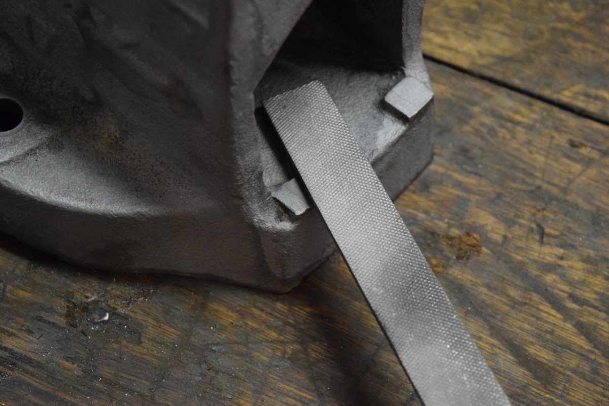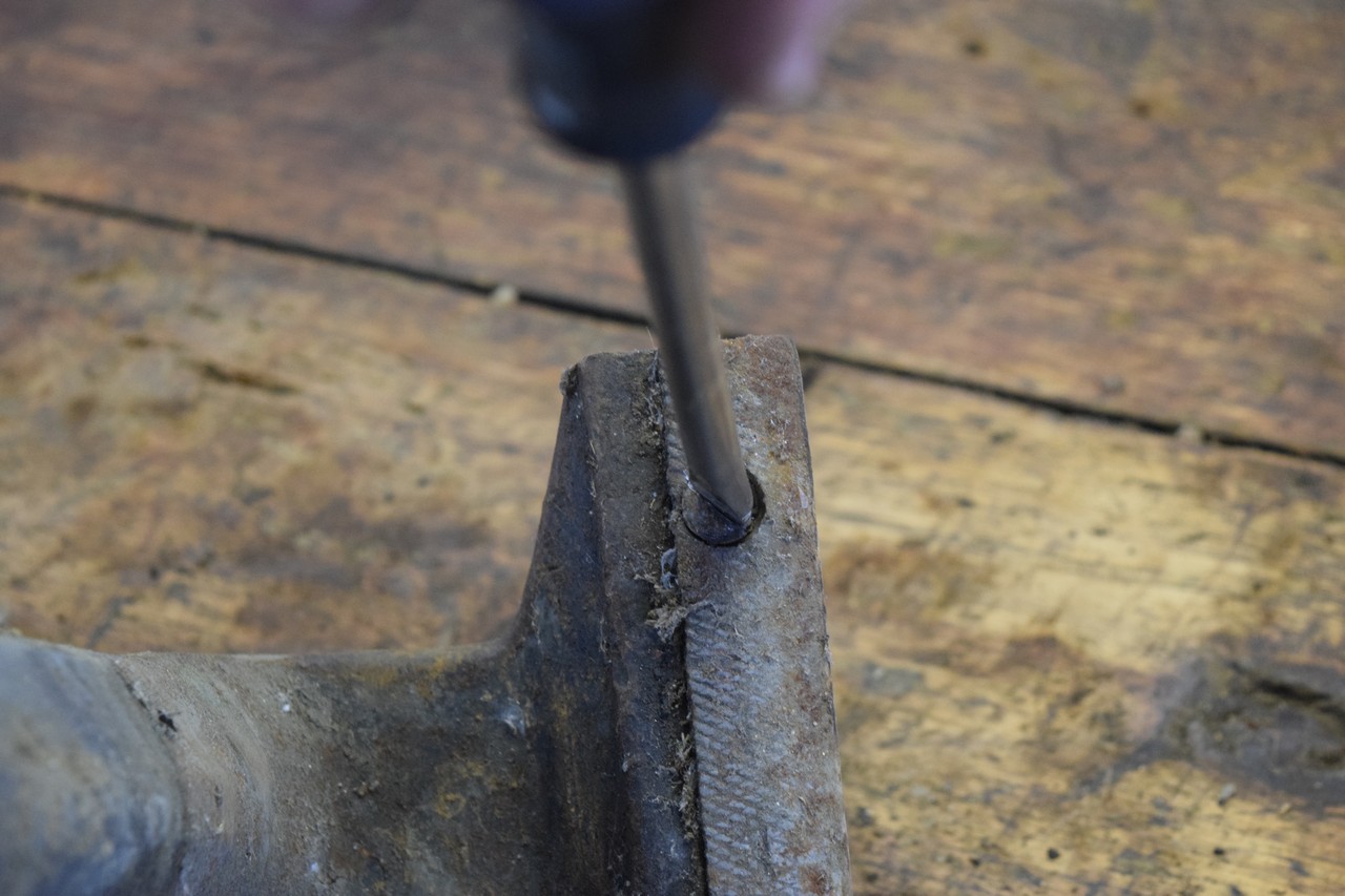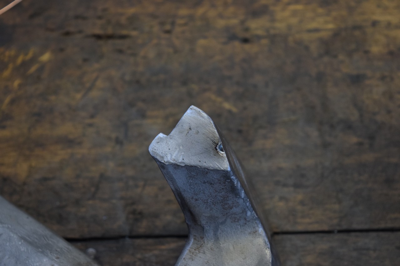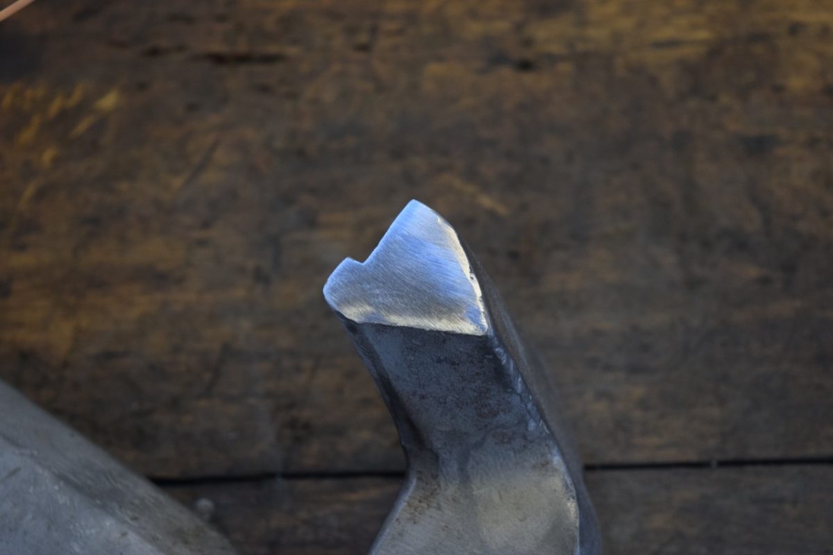 L’enclume étant pleine de coups de marteaux, je décide d’enlever un peu de matière pour lui refaire une surface lisse et parfaitement plane.