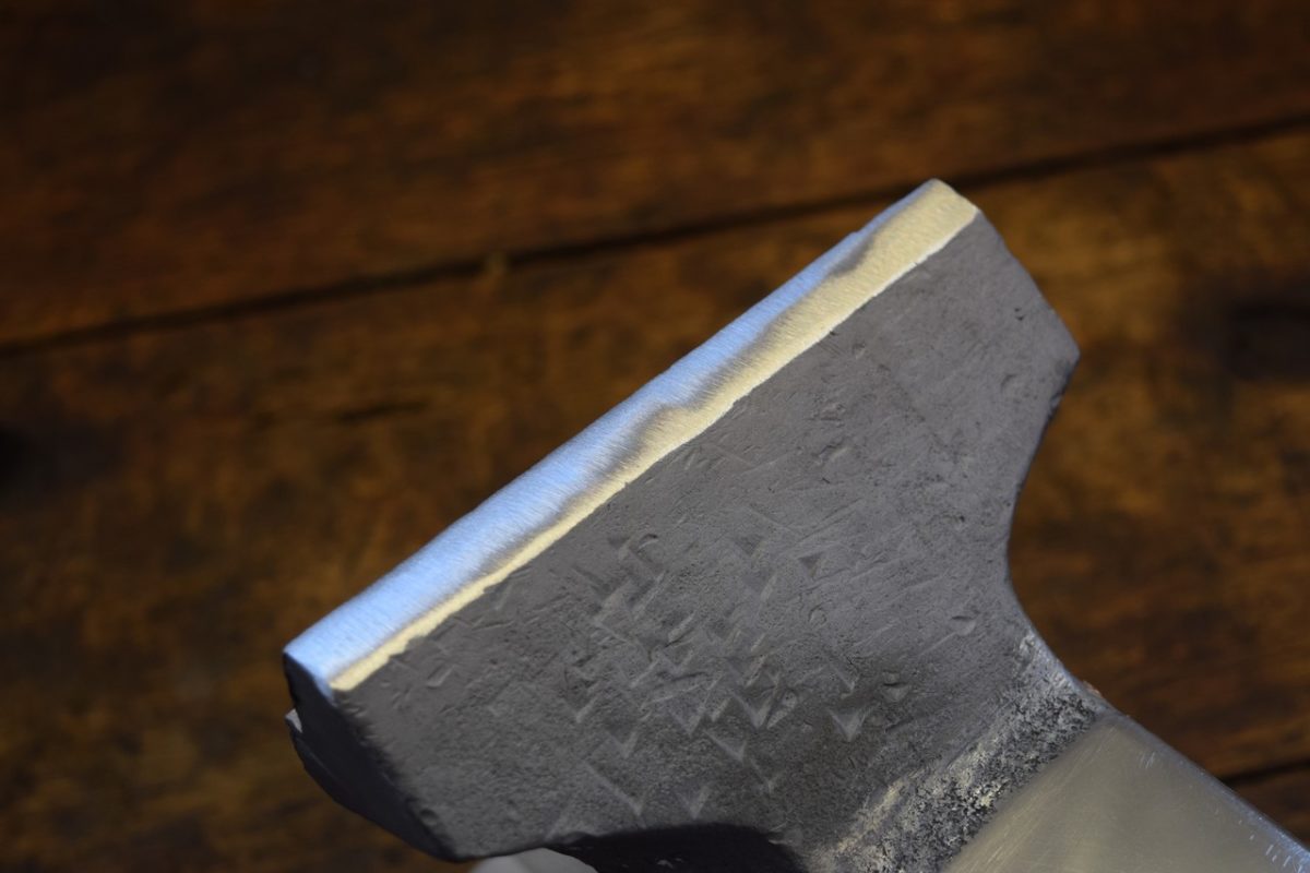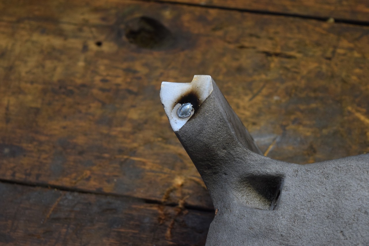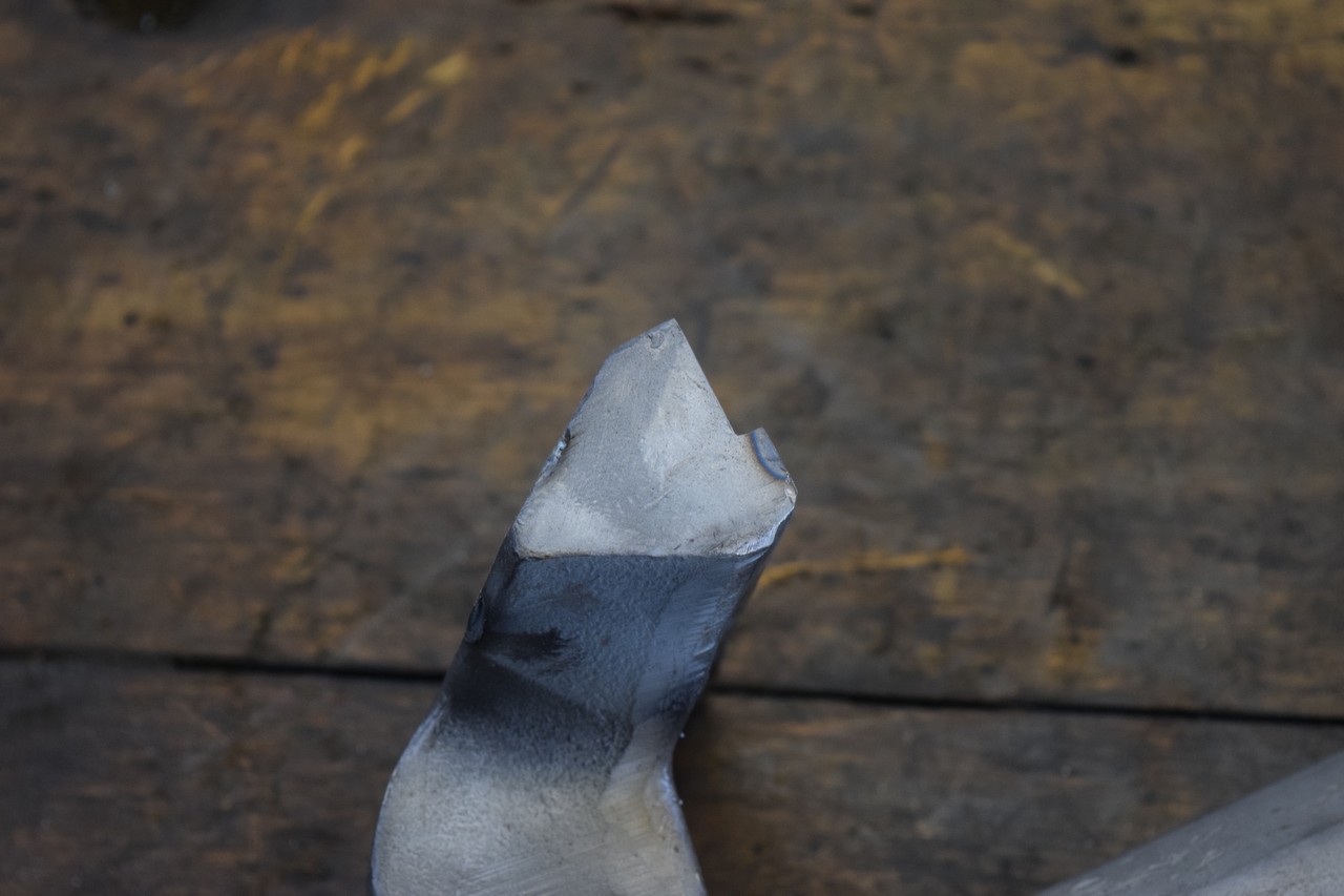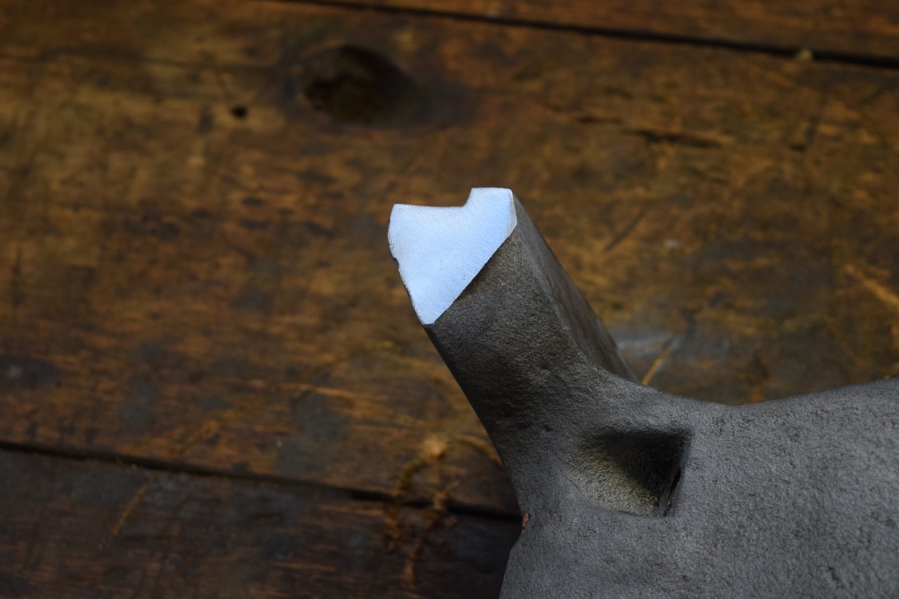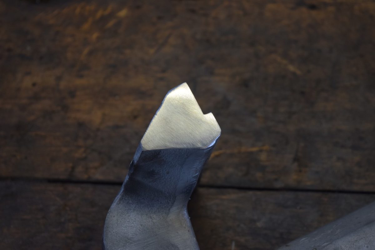 L’enclume étant pleine de coups de marteaux, je décide d’enlever un peu de matière pour lui refaire une surface lisse et parfaitement plane.