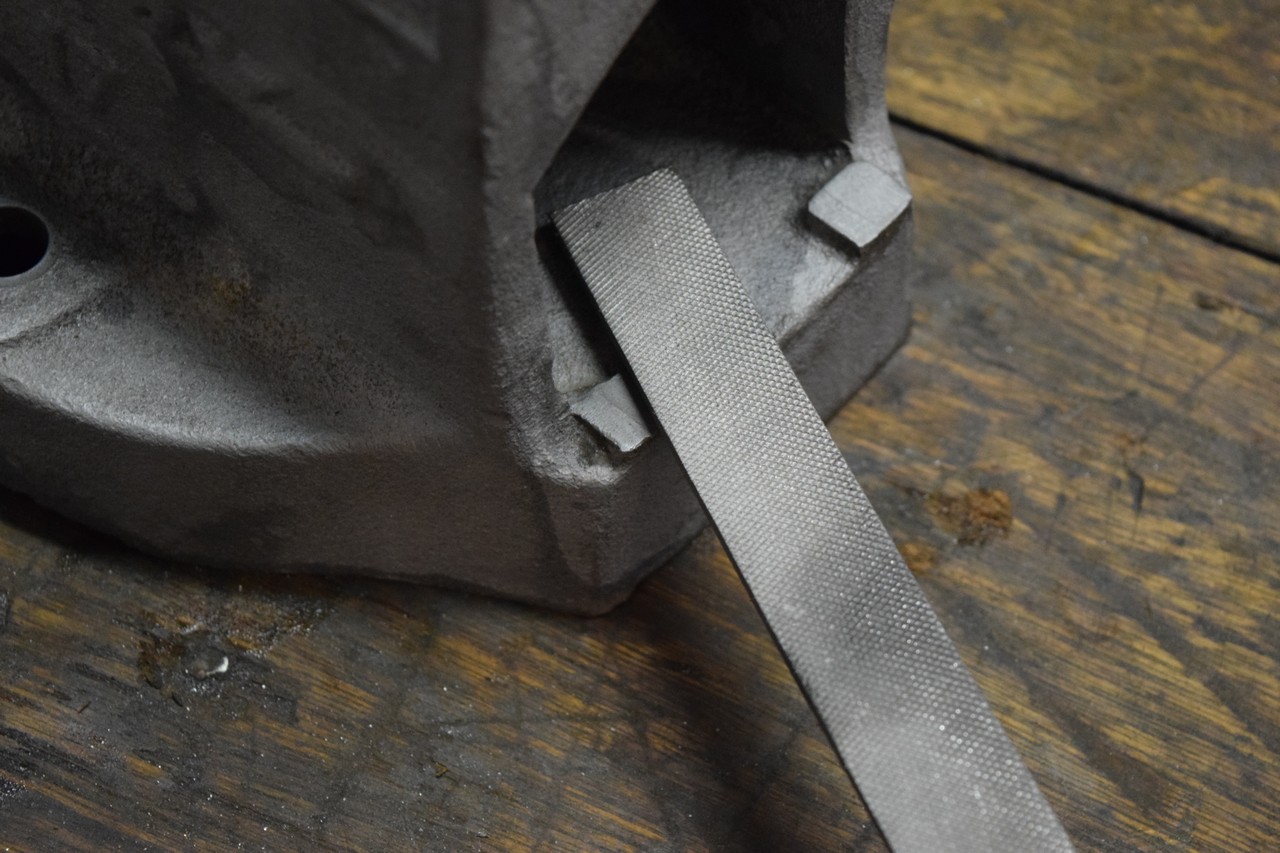 N’étant pas équipée de fraise, je fais ça à la lime. C’est long, mais c’est le seul moyen que j’ai pour enlever de la matière tout en obtenant une surface plane.