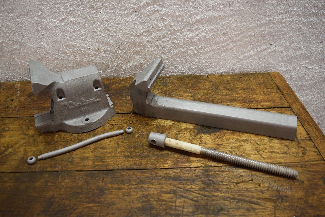 Maintenant que tous les composants de l’étau sont entièrement démontés, nettoyés et dégraissés, je peux passer au sablage !