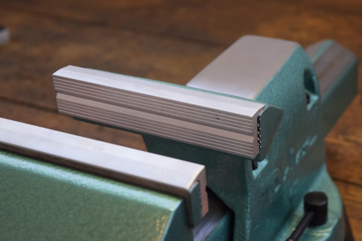 Tant qu’à faire les choses bien, j’ai acheté un kit de mordaches magnétiques interchangeables qui viennent se fixer directement sur les mors. C’est pour moi indispensable pour serrer des pièces que l’on ne veut pas marquer.