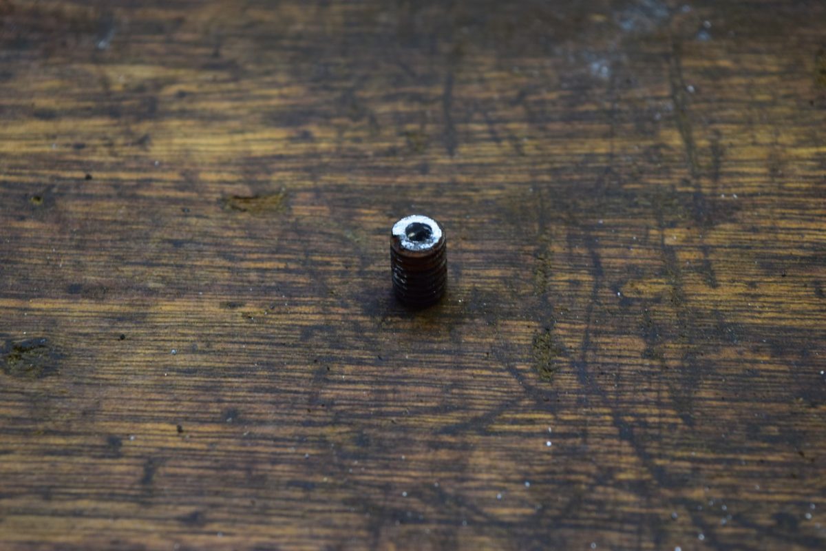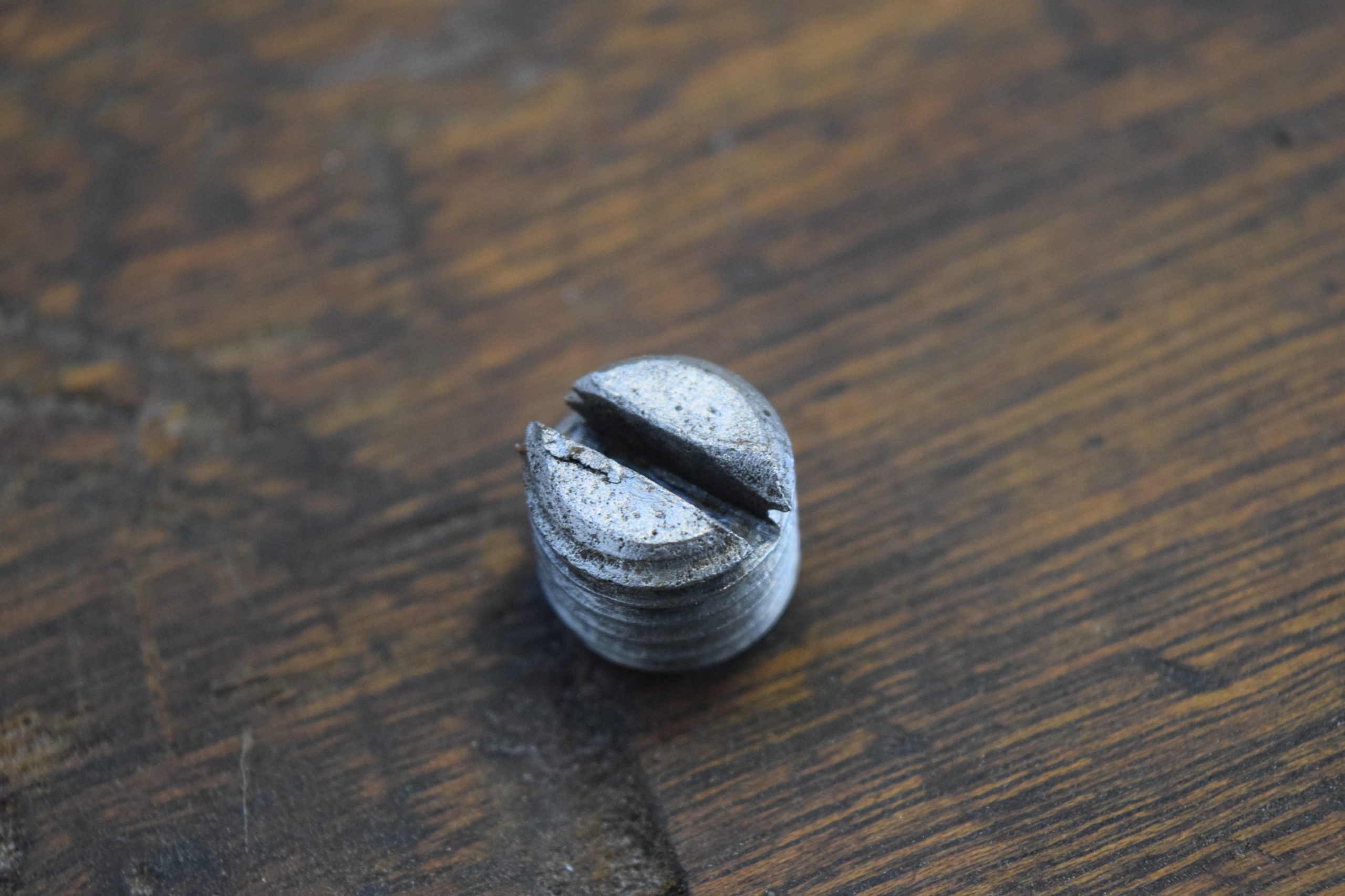 Et je refais une entaille dans la tête de vis pour pouvoir la sortir au tournevis.