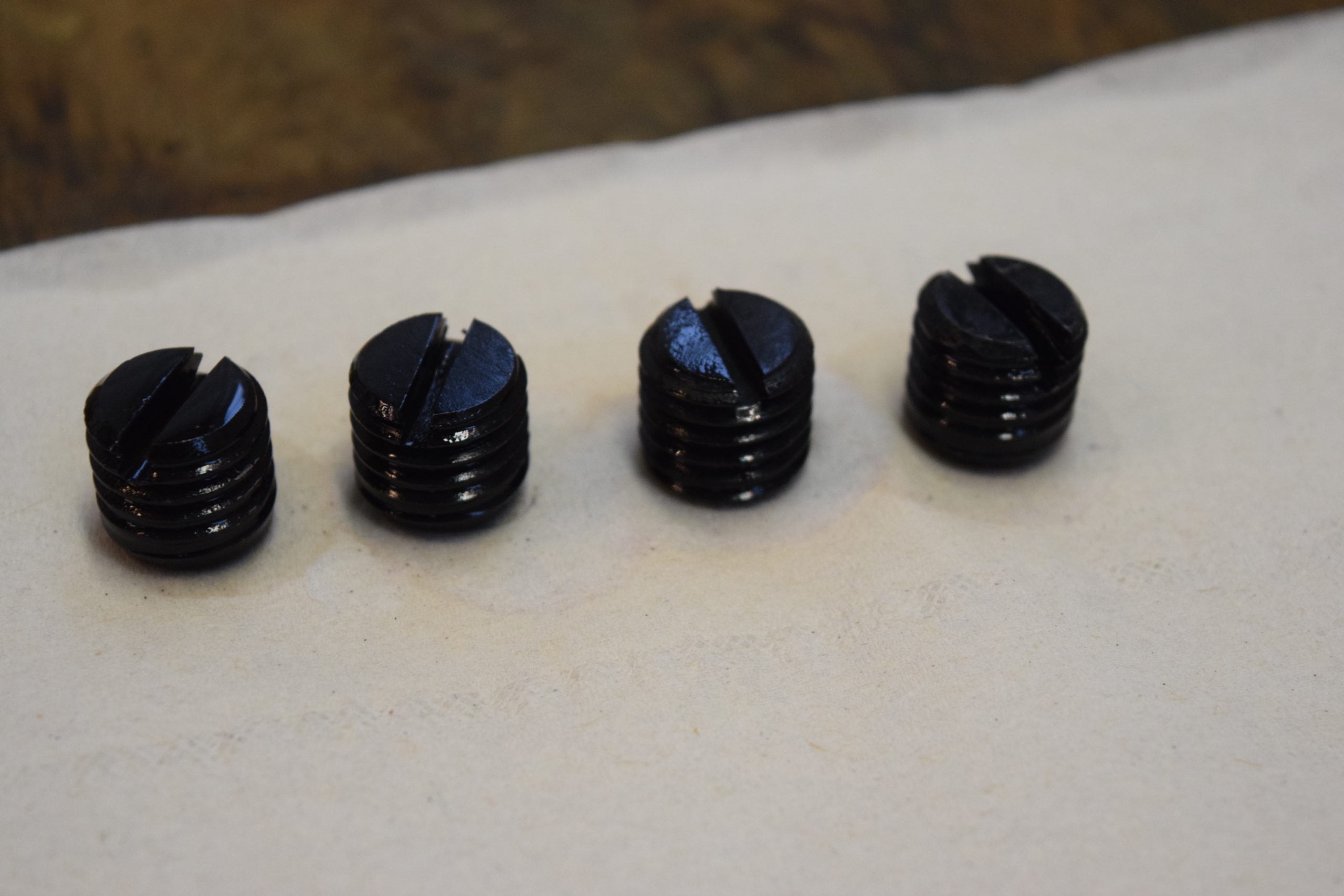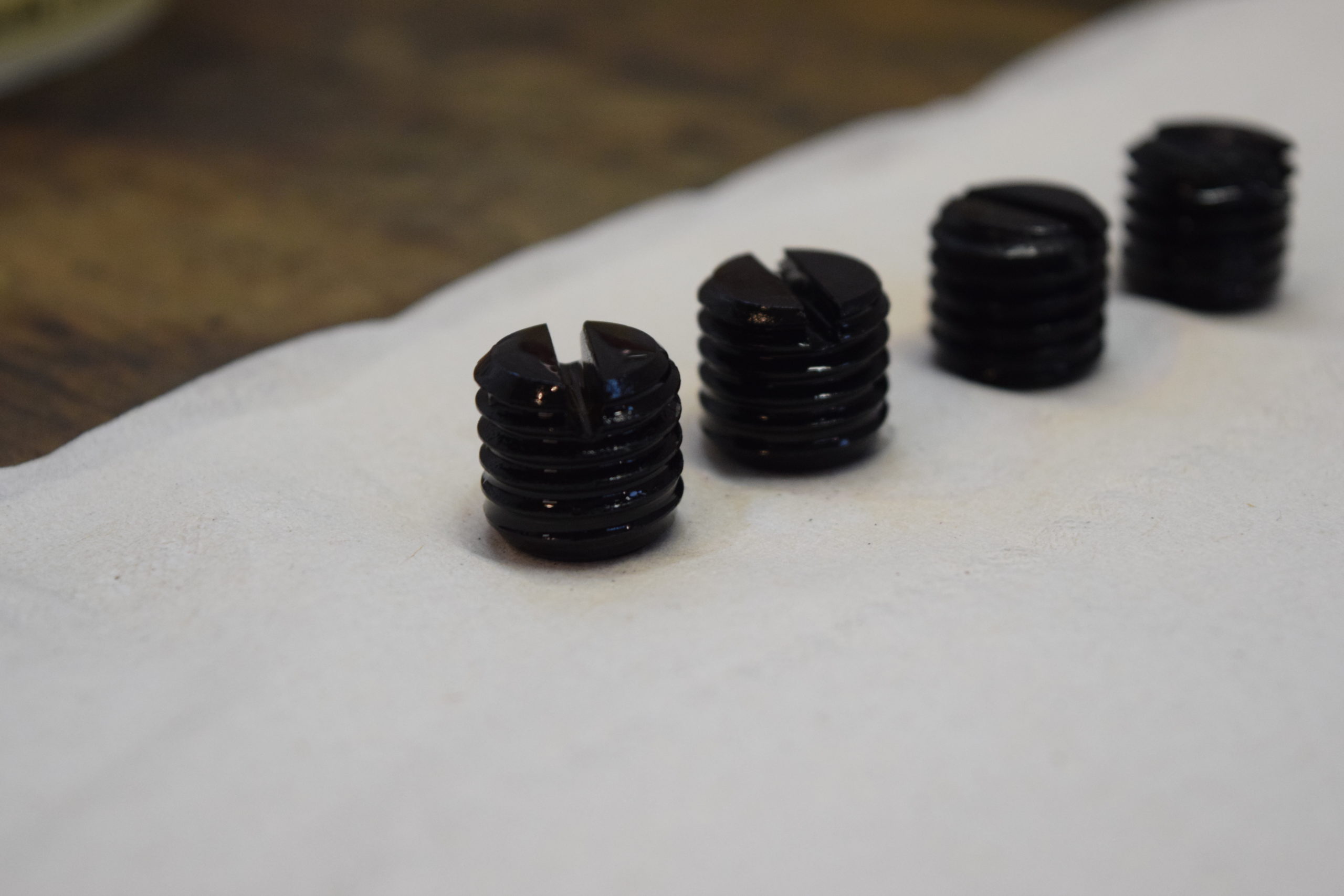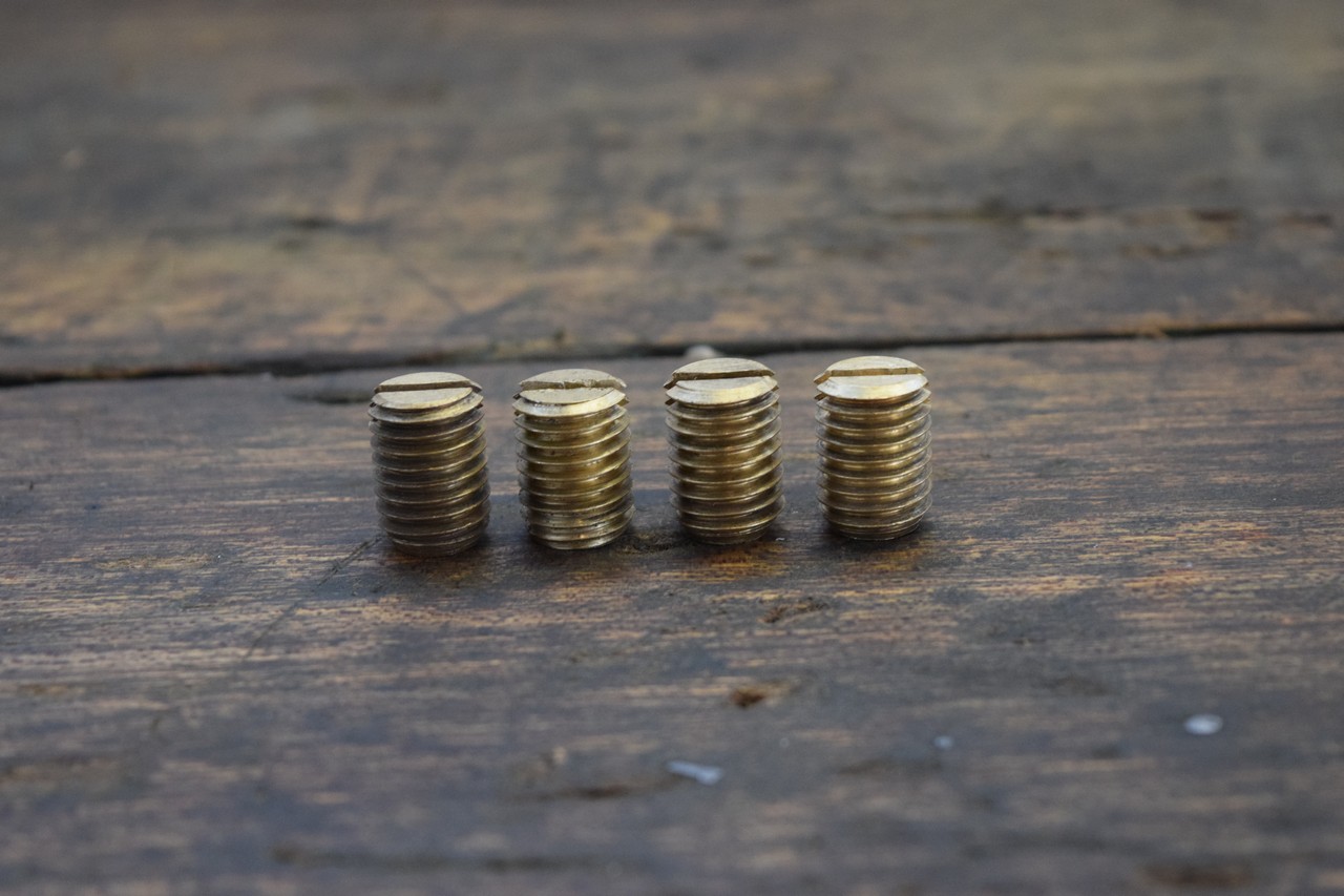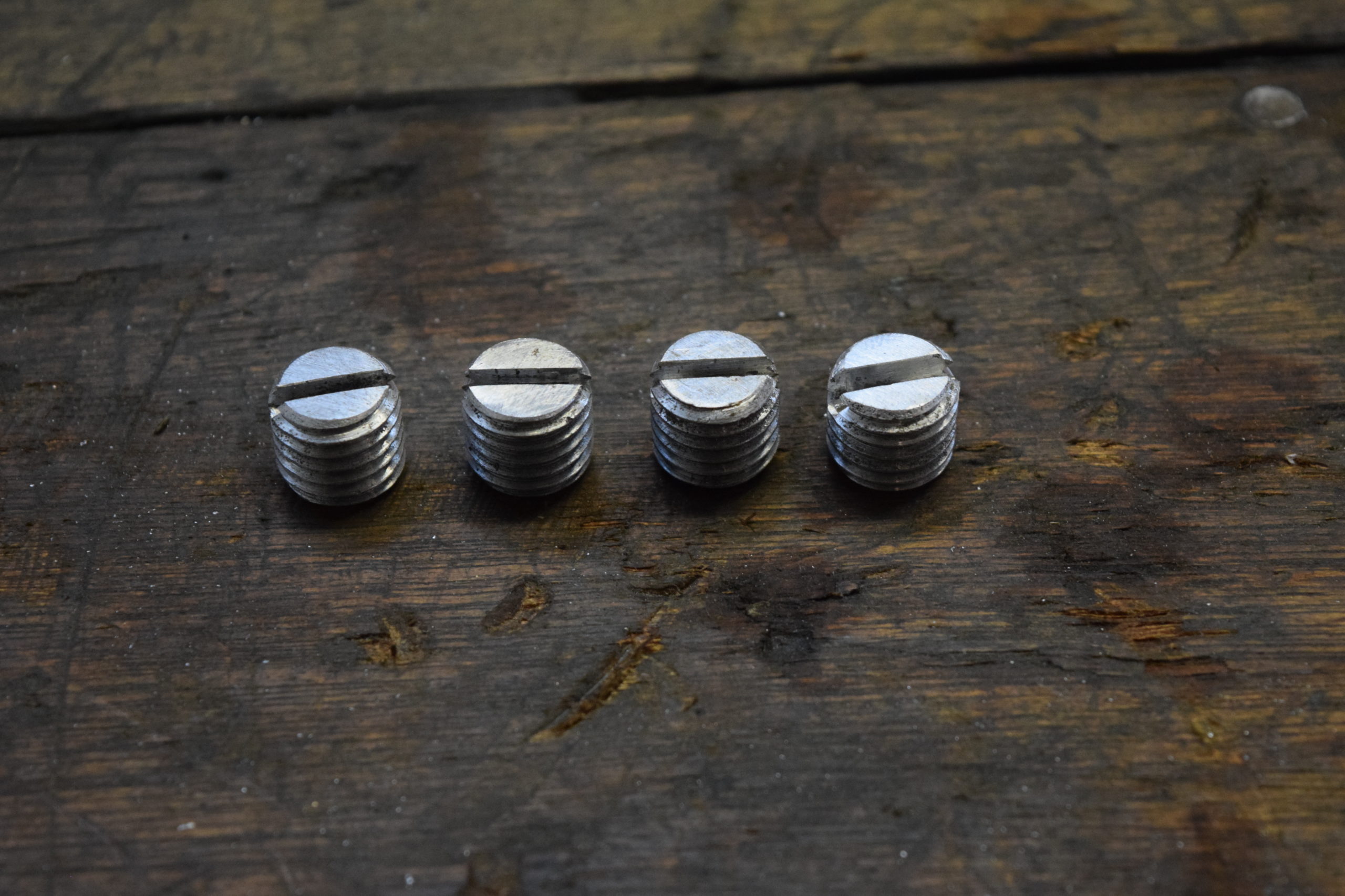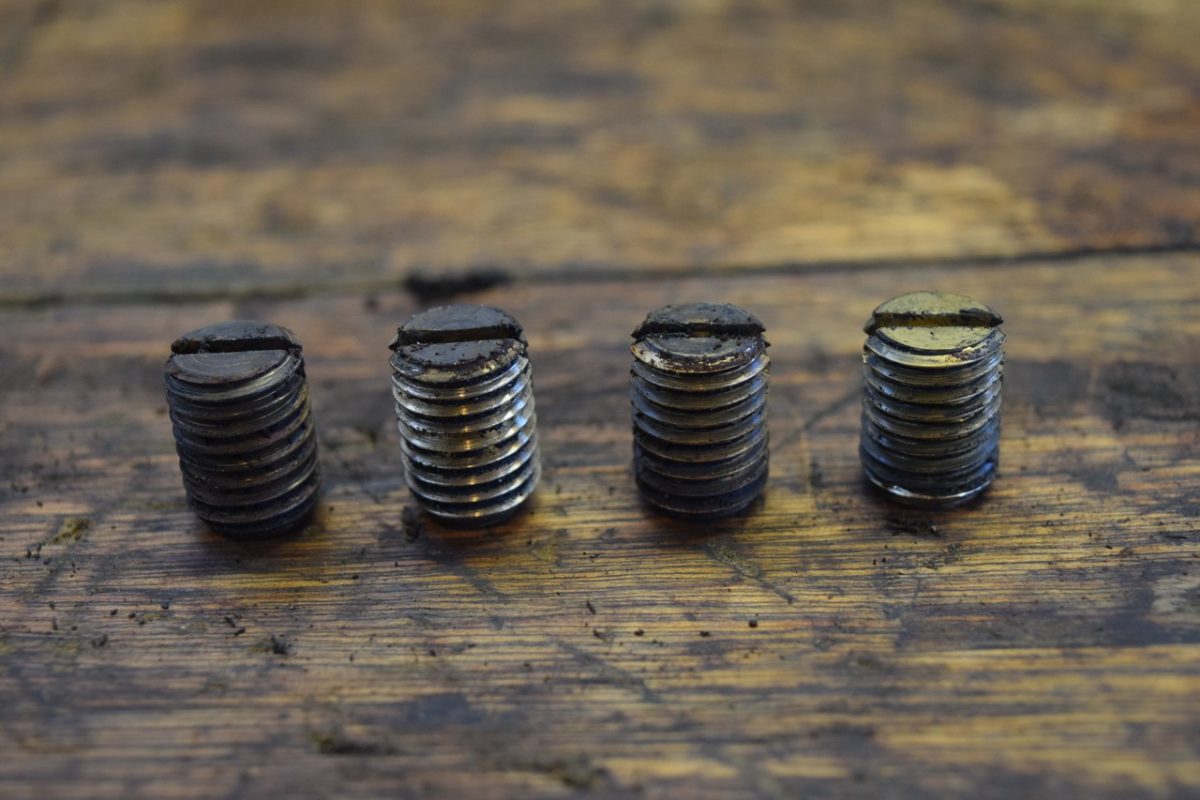 Il y a en tout 4 vis de réglages en laiton et 4 vis en acier qui viennent bloquer le réglage des vis laiton. On commence donc naturellement par les vis de blocage, qui sont toutes grippées.