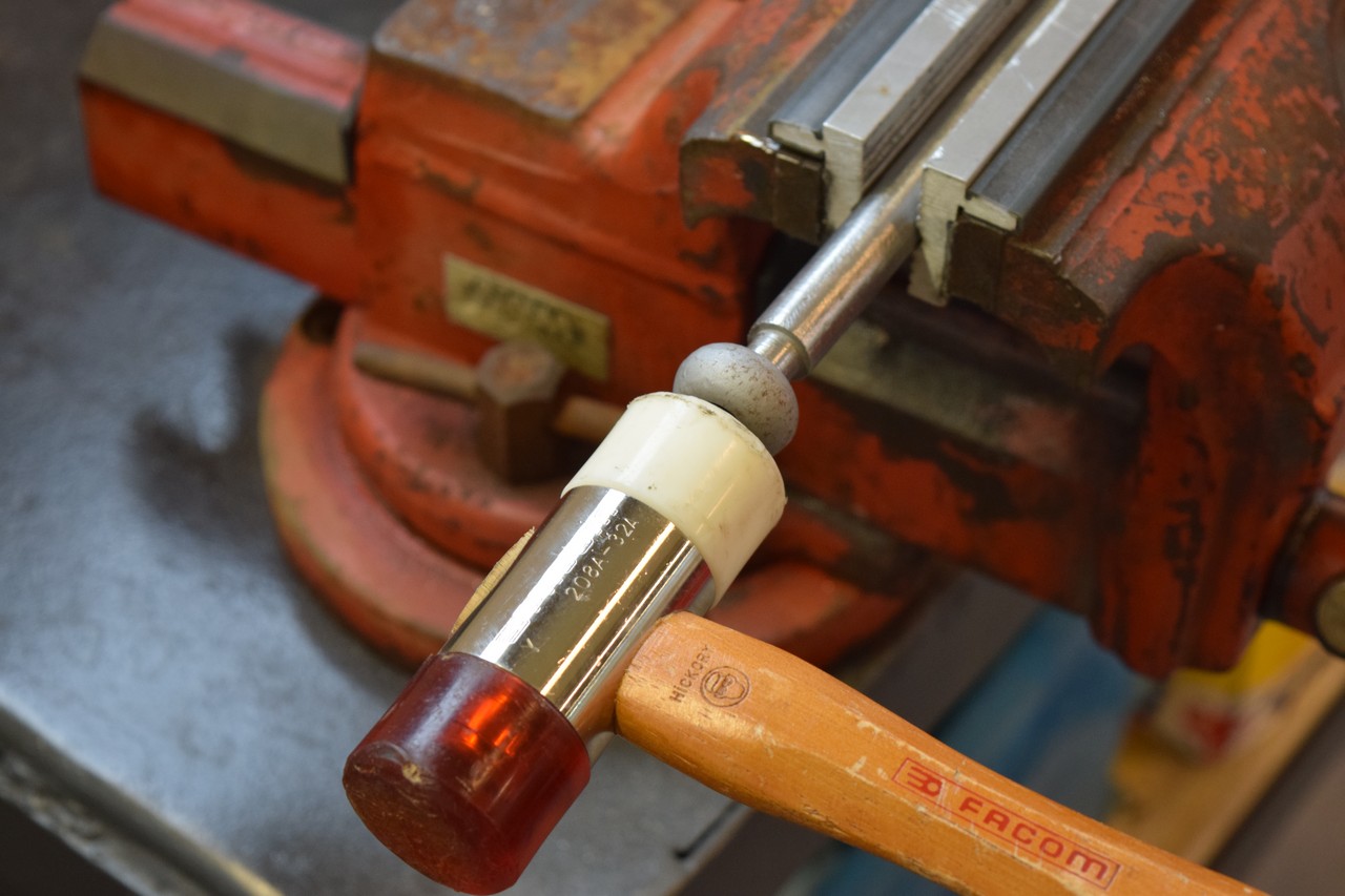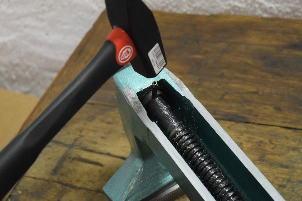 Pour cela, je tapote avec un chasse goupille et un marteau pour enfoncer légèrement la goupille.