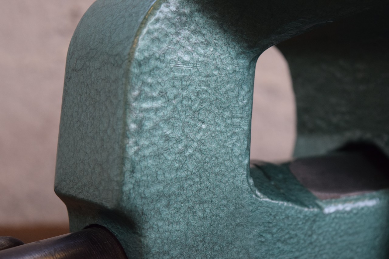 Comme promis plus haut dans l’article, voici quelques photos plus en détails de l’étau et de la peinture martelée 🙂