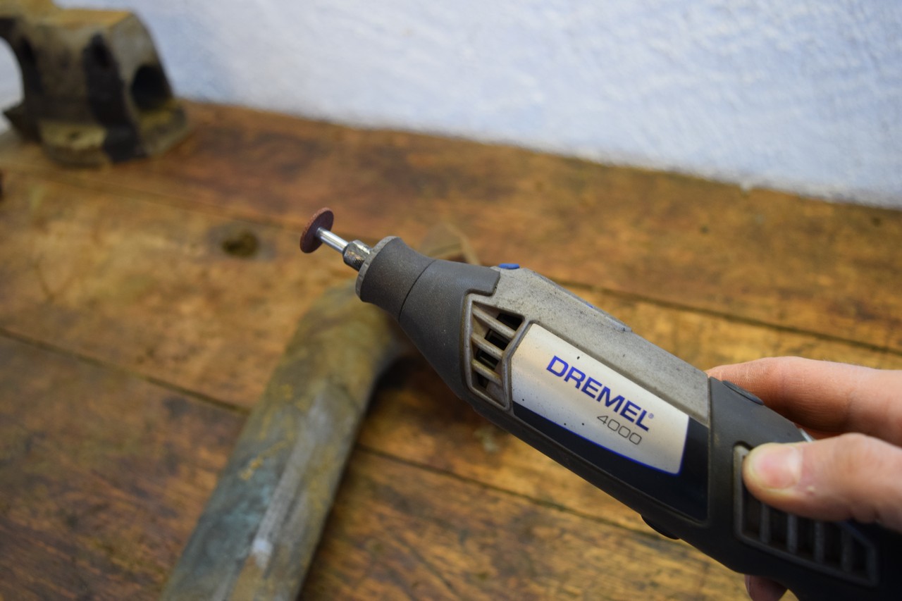 J’équipe donc la Dremel d’un mini disque à tronçonner…
