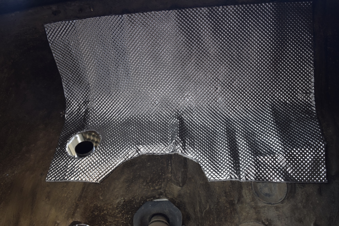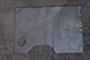 Nous avons donc opté pour une plaque d’isolant spécifique, résistante aux très hautes températures (jusqu’à 960°C radiant). Il suffit de la découper (au cutter ou aux ciseaux) aux dimensions et à la forme voulue (après avoir réalisé un patron en carton par exemple) puis de la coller à l’intérieur de l’aile. L’isolant est auto-adhésif mais pensez au préalable à bien nettoyer la surface intérieure pour un encollage durable.