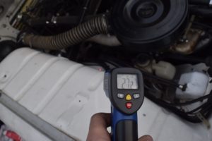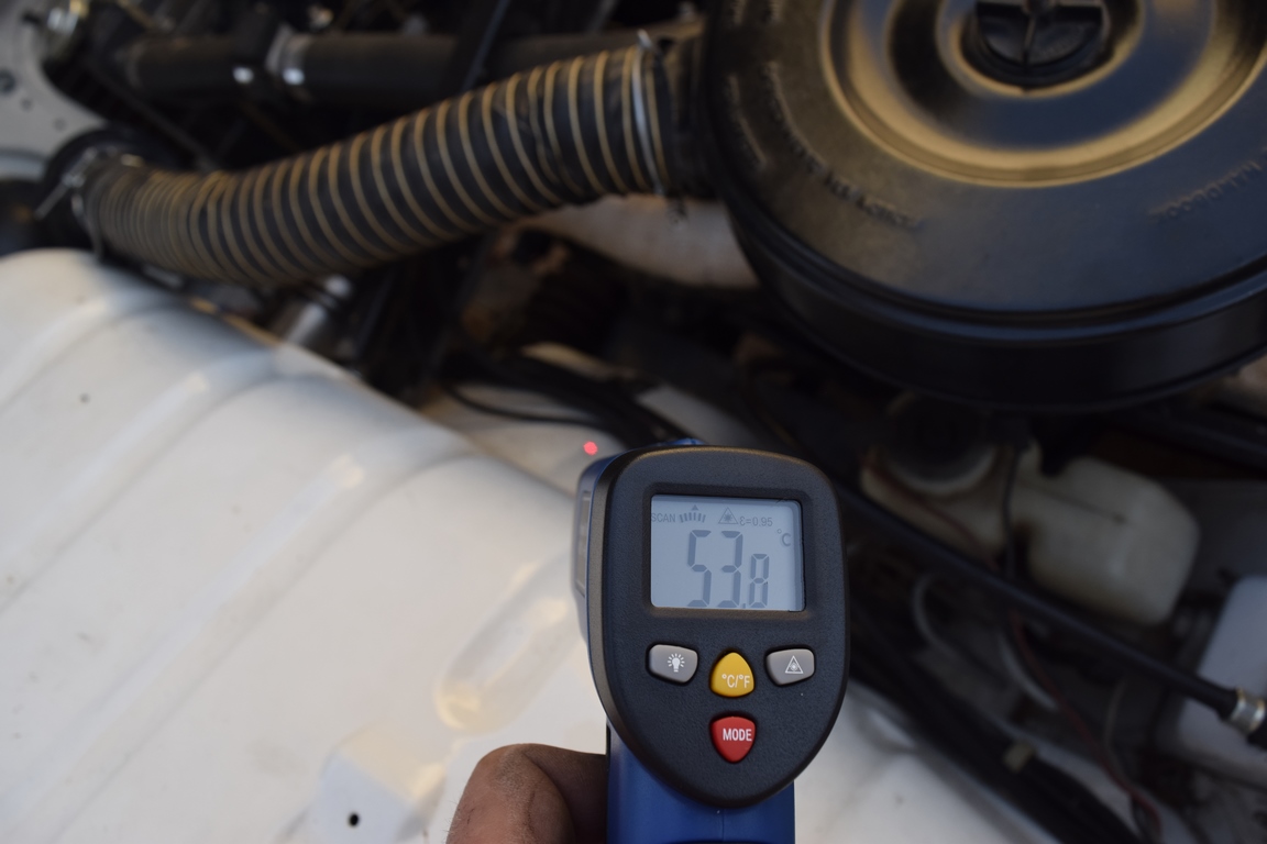 L’isolant thermique se révèle être très efficace : en réalisant le même test que tout à l’heure (ralenti pendant 10 minutes avec quelques accélérations), la température de l’aile à l’intérieur du compartiment moteur a diminué de moitié (27,2°C au lieu de 53,8°C) ! Plus besoin de se protéger les bras à chaque intervention 🙂