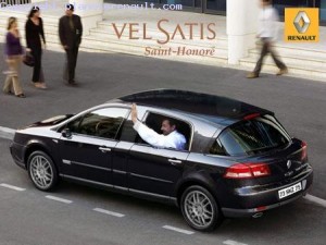 • une Renault Vel Satis qu’il utilisait le plus souvent, du fait de sa sécurité optimale (blindage acier) et son intérieur bling-bling, oups, luxueux…