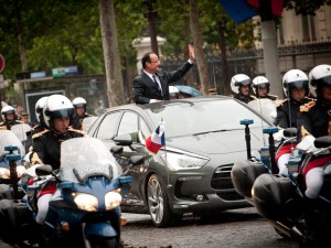 François Hollande aime la nature. A bord de sa DS5 hybride, le Président limite ses émissions de CO2 ainsi que son empreinte carbone lors de ses déplacements. Lorsque le temps est pluvieux, il apprécie tout particulièrement de prendre l’air et défiler hors du toit ouvrant de sa DS5, quitte à tremper son costume… Sacré François ! Il restera fidèle à cette DS5 durant l’intégralité de son mandat. Cependant, il semblerait que son camp ait déjà choisie la voiture qui l’accompagnera durant sa campagne à sa réélection en 2017 : une Volkswagen !